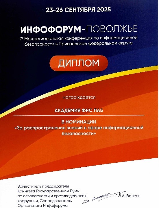 Наша академия победила в 5-м всероссийском конкурсе «Кубок информационной безопасности регионов» в номинации «За распространение знаний в сфере информационной безопасности»....